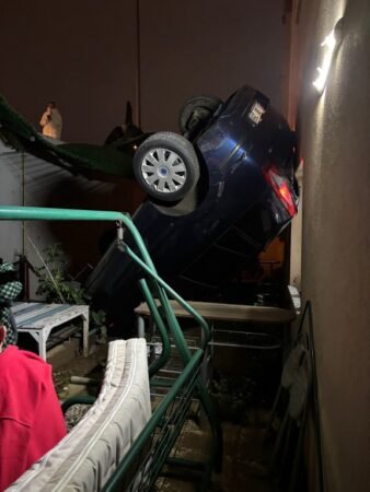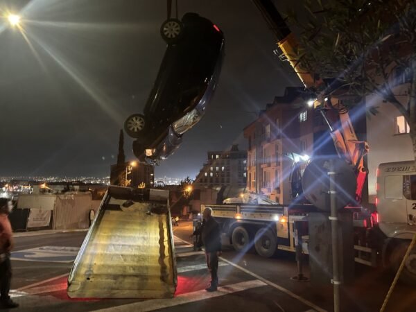 Pendik'te kontrolden çıkan otomobilin istinat duvarından apartman bahçesine düştüğü kazada 2 kişi yaralandı
