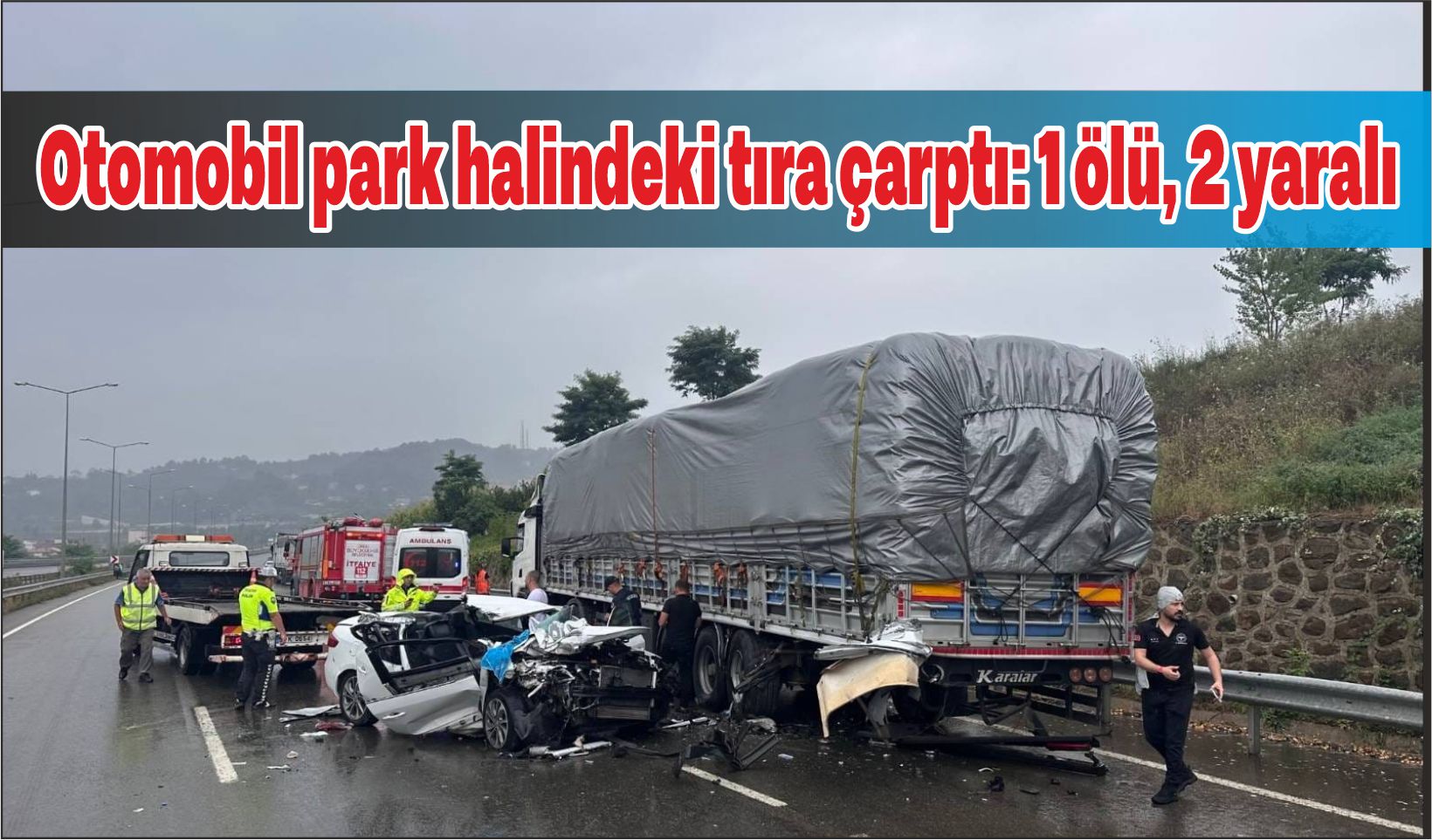 Otomobilin park halindeki tıra çarpması sonucu 1 kişi hayatını kaybetti, 2 kişi ise yaralandı.