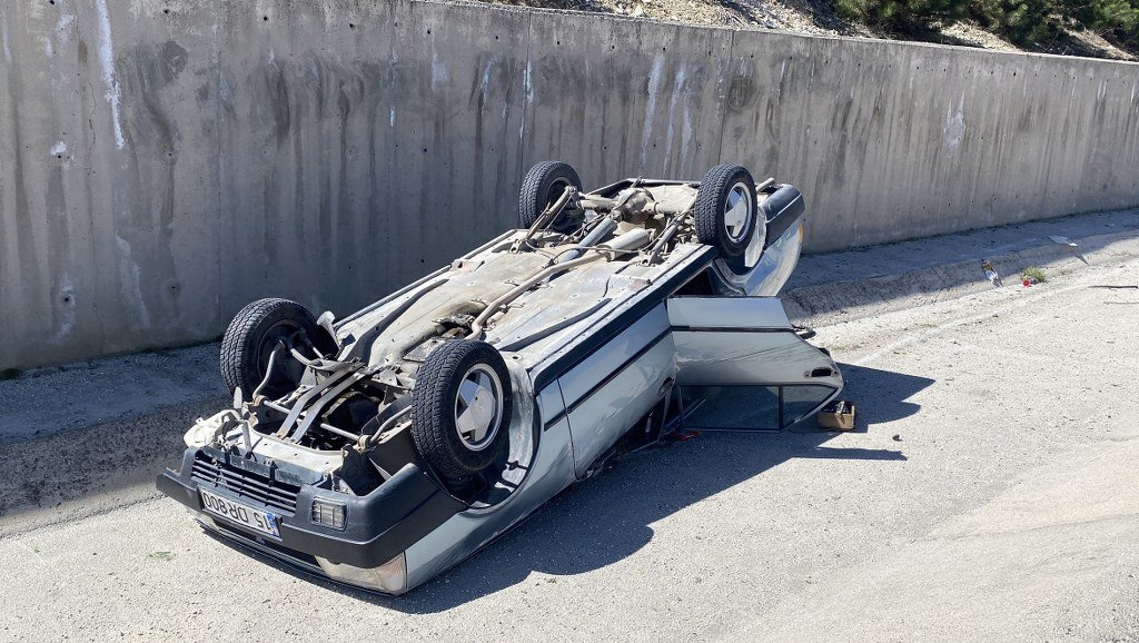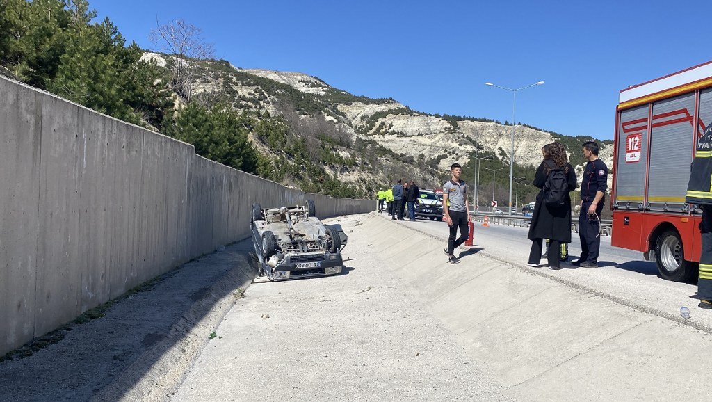 Burdur-Antalya kara yolunda kontrolden çıkan otomobil şarampole devrildiği