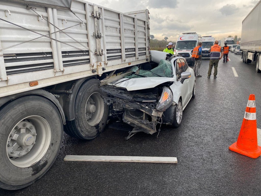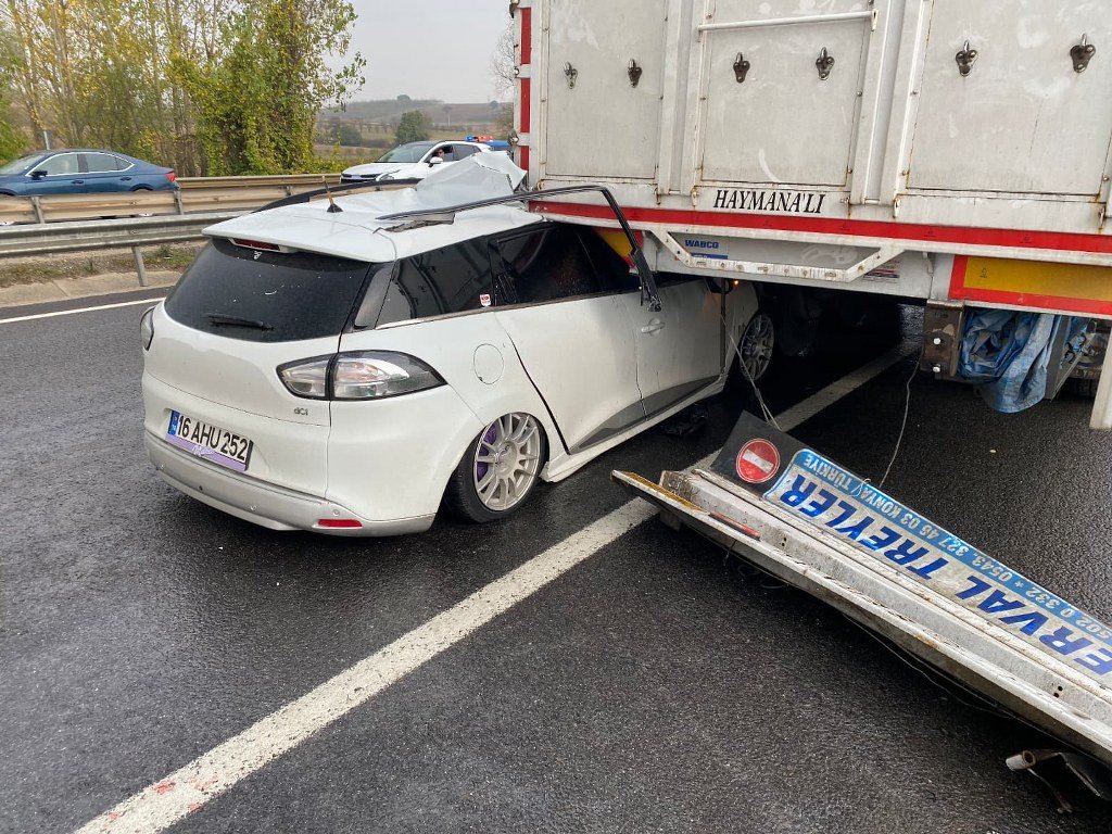 Bursa'dan İnegöl'e seyir halinde olan sürücü Eray K.(21) Yönetimindeki 16 AHU 252 plakalı otomobil, sürücüsünün kontrolünden çıkarak önünde seyreden sürücü Hayri Y.(60) yönetimindeki 06 PIA 96 plakalı tıra çarpıp altına girdi.