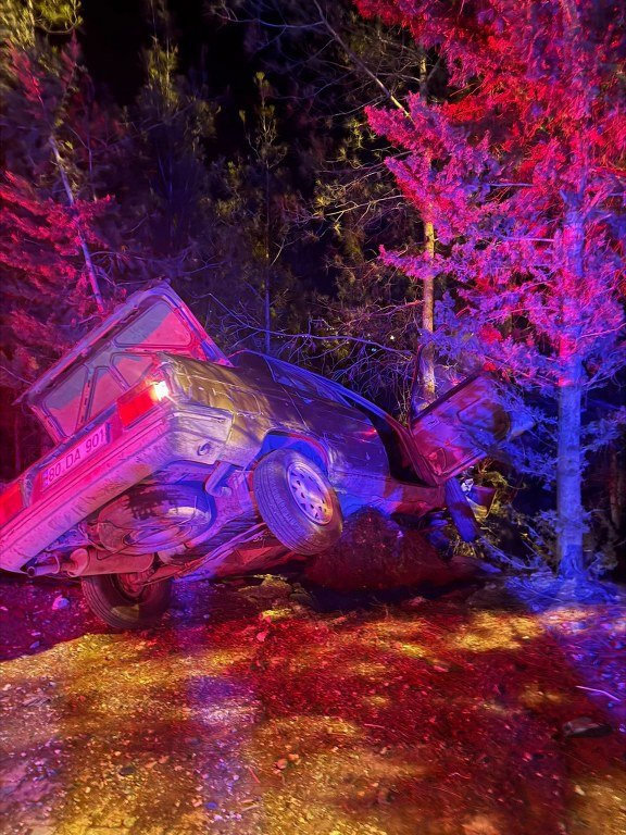 Otomobil uçuruma düşmekten ağaç sayesinde kurtuldu: 3 yaralı