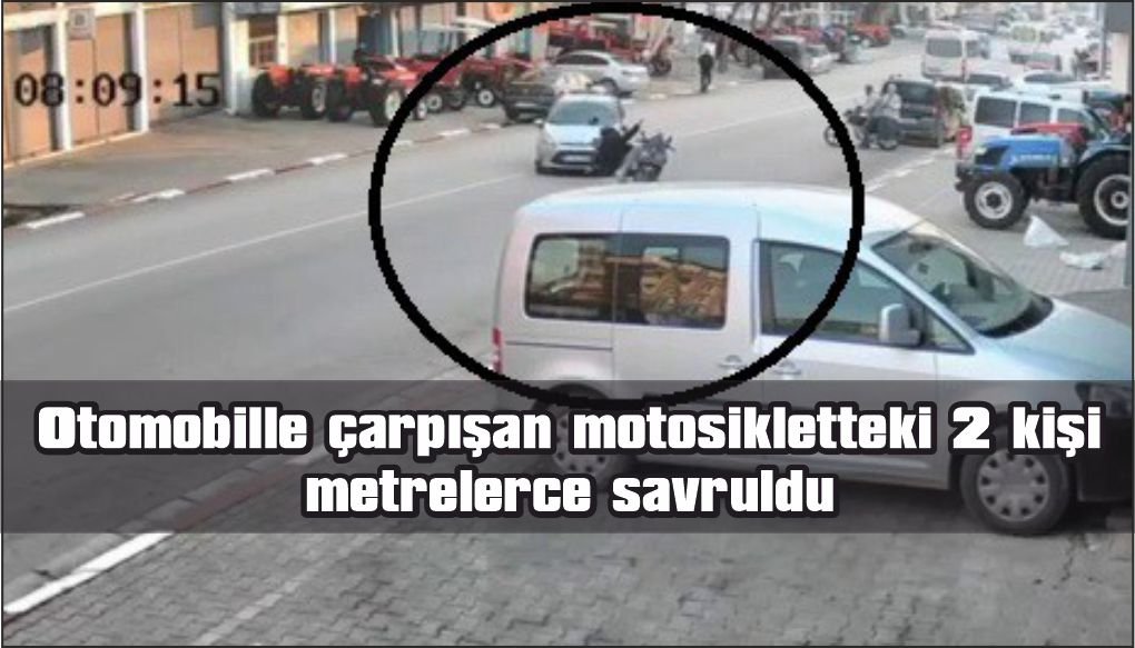 Otomobille çarpışan motosikletteki 2 kişi metrelerce savruldu