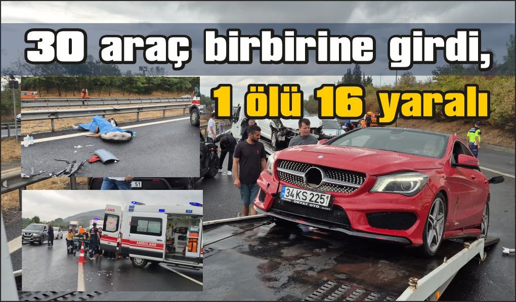 Anadolu Otoyolu’nun Düzce kesiminde yağış nedeniyle kayganlaşan yolda art arda meydana gelen 4 ayrı zincirleme kazada 30 araç birbirine girdi. Kazalarda 1 kişi yaşamını yitirirken, 16 kişi yaralandı.