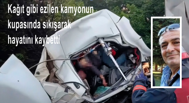 Anadolu Otoyolu Kocaeli geçişinde tıra arkadan çarpan kamyonun kağıt gibi ezilen kupa kısmında sıkışan sürücü olay yerinde hayatını kaybetti.