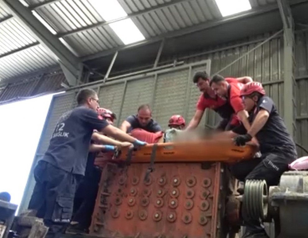 Makinenin içinden 45 dakika süren çabayla çıkartılıp hastaneye kaldırıldı 2 bacağını kaybeden işçilerin kopan uzuvları alınarak hastaneye götürüldü