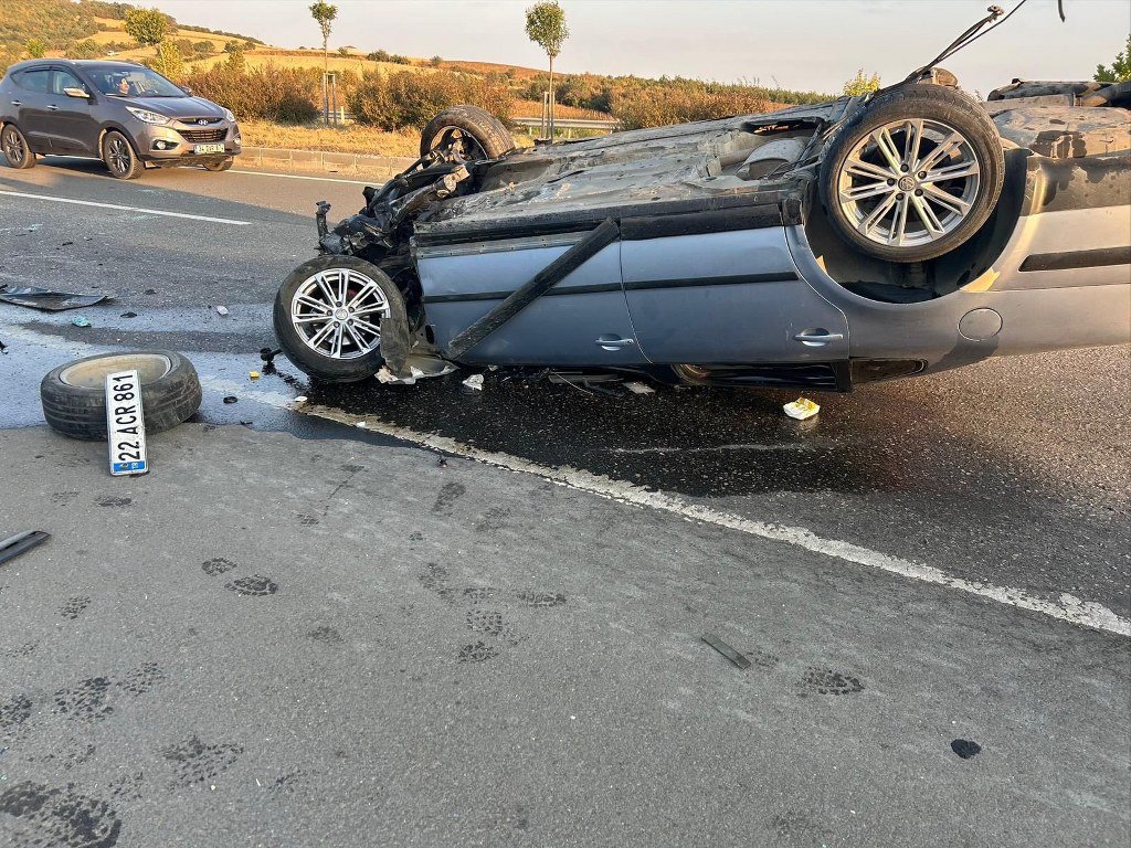 Tekirdağ’ın Malkara ilçesinde refüje çarpan otomobil takla attı