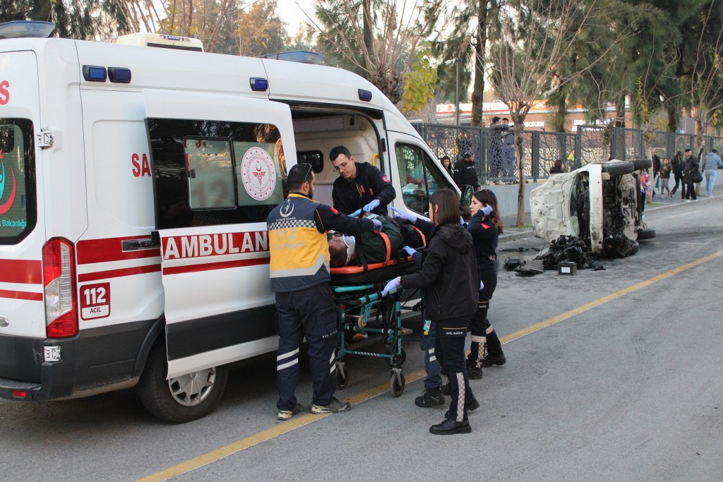 Aydın'ın Efeler ilçesinde kontrolden çıkarak refüje çarpıp takla atan araçta bulunan 4 kişi yaralandı