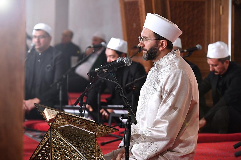 Başkan Erbaş’ın kıldırdığı yatsı namazının ardından başlayan programda, Kur’an-ı Kerim tilavetleri yapıldı, salavatlar getirildi, ülkemiz ve İslam alemi için dualar edildi.