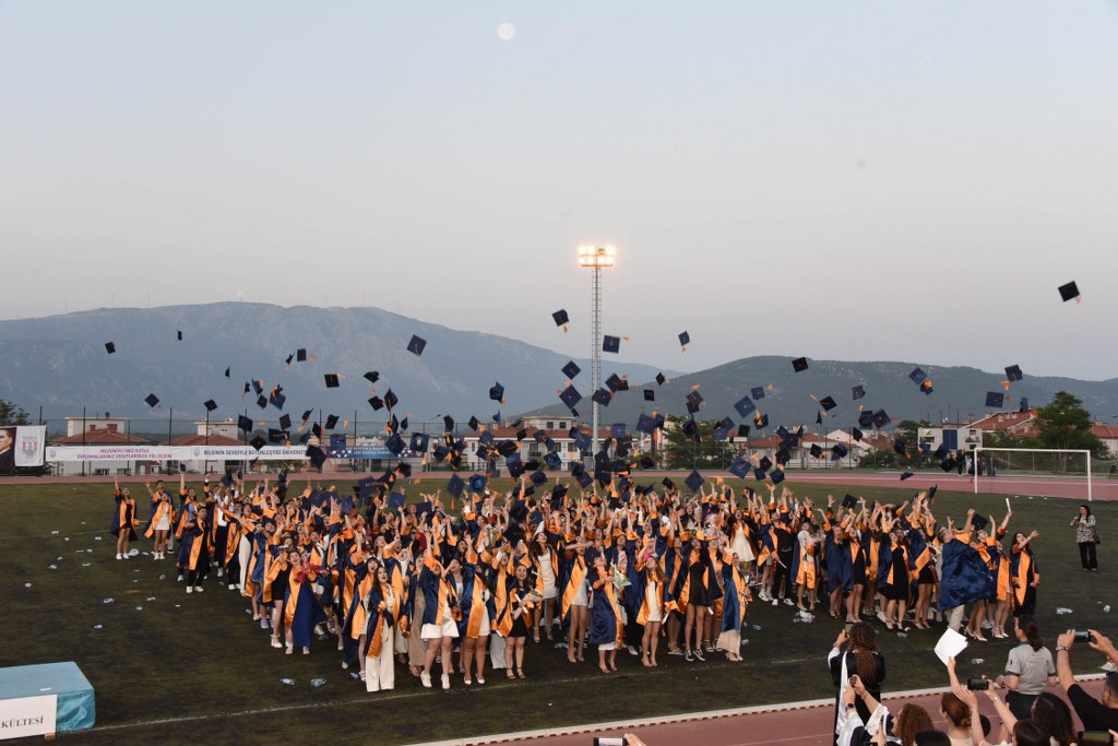 Mezun öğrencilere başarı belgelerinin verilmesinin ardından, öğrenciler hep birlikte keplerini havaya fırlattı. 421 öğrenci meslek yaşamlarına uğurlandı.