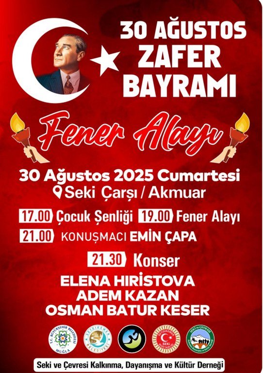 Vatandaşlar, Zafer Bayramı’nı hem eğlenceli hem de anlamlı etkinliklerle kutlamak için Seydikemer’in Seki Mahallesi Akmuar’da bir araya gelecek.