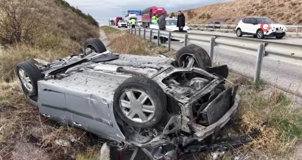 Kırıkkale’de seyir halindeki bir otomobil, arkadan başka bir otomobilin çarpmasıyla bariyerleri aşarak şarampole devrildi
