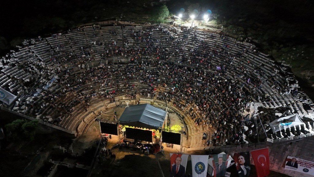 Kumluova Mahallesinde bulunan Letoon Antik Kentinde gerçekleşen festival saygı duruşu ve istiklal marşının söylenmesi ile başladı.