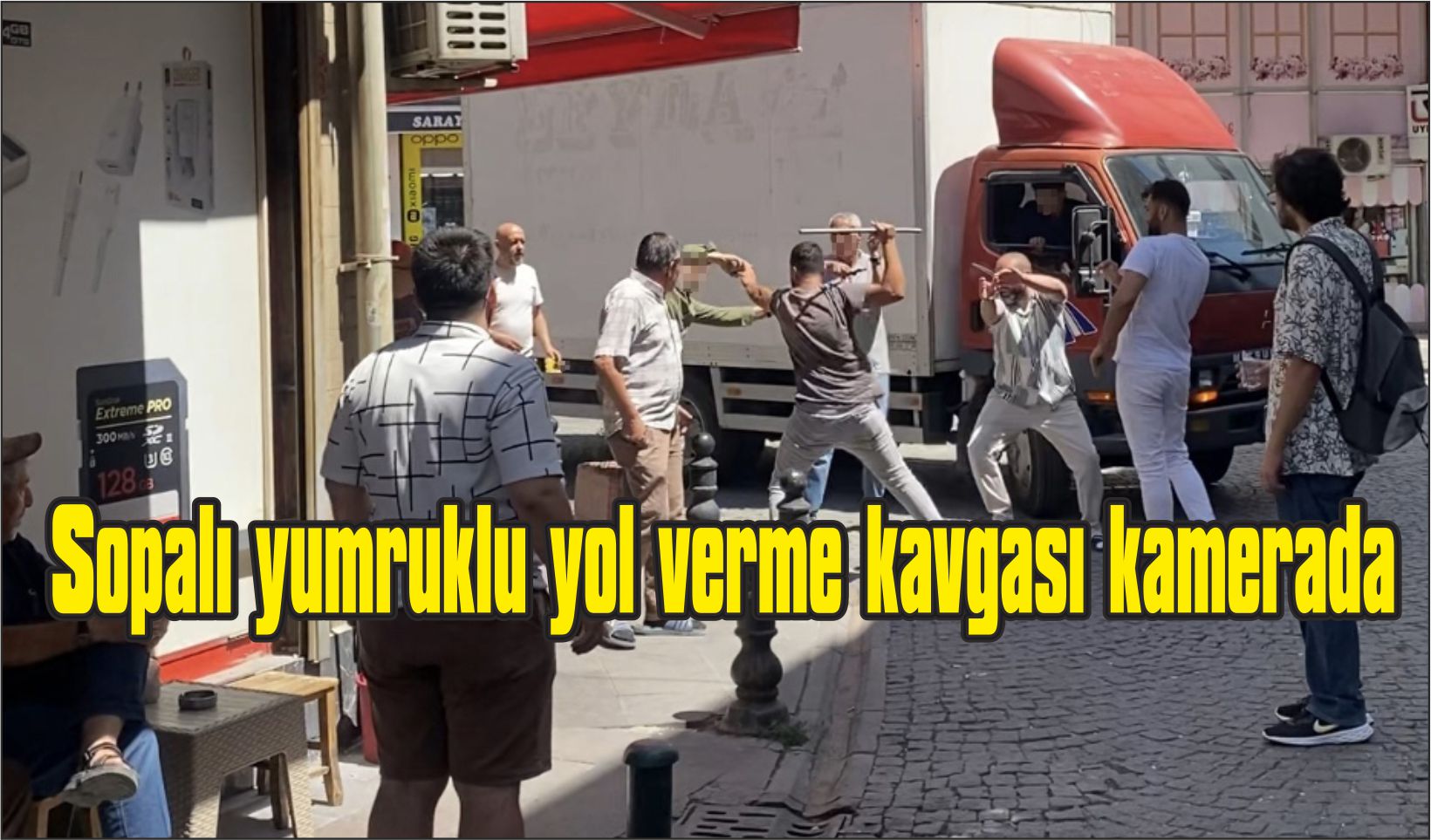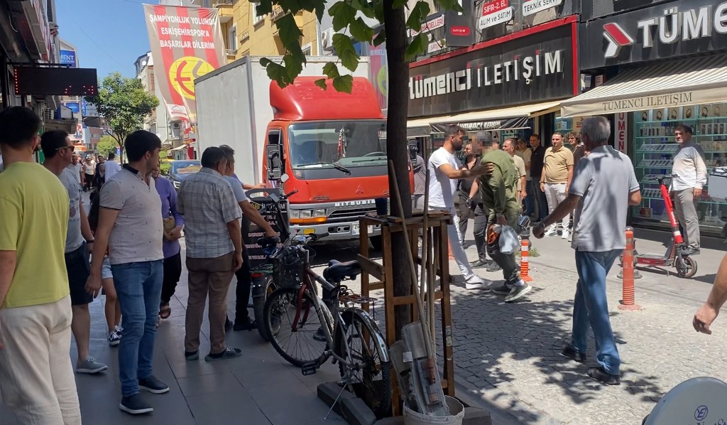 Eskişehir’in İstiklal Mahallesi Ertuğrul Bey Sokak’ta, yol verme tartışması sopalı ve yumruklu kavgaya dönüştü. Sokakta duraklayan kamyon nedeniyle yolu kapattıkları iddia edilen 2 kişi ile aceleci bir taksi yolcusu arasında başlayan tartışma, kısa sürede büyüdü. Cep telefonu kamerasına yansıyan görüntülerde, taksi yolcusunun kamyonu yumrukladığı, kamyon şoförünün ise araçtan inip demir sopayla yolcunun başına vurduğu anlar yer aldı.