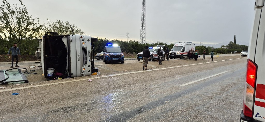 Adana’nın Kozan ilçesinde, tarım işçilerini taşıyan minibüsün devrilmesi sonucu meydana gelen kazada 1’i çocuk 11 kişi yaralandı.