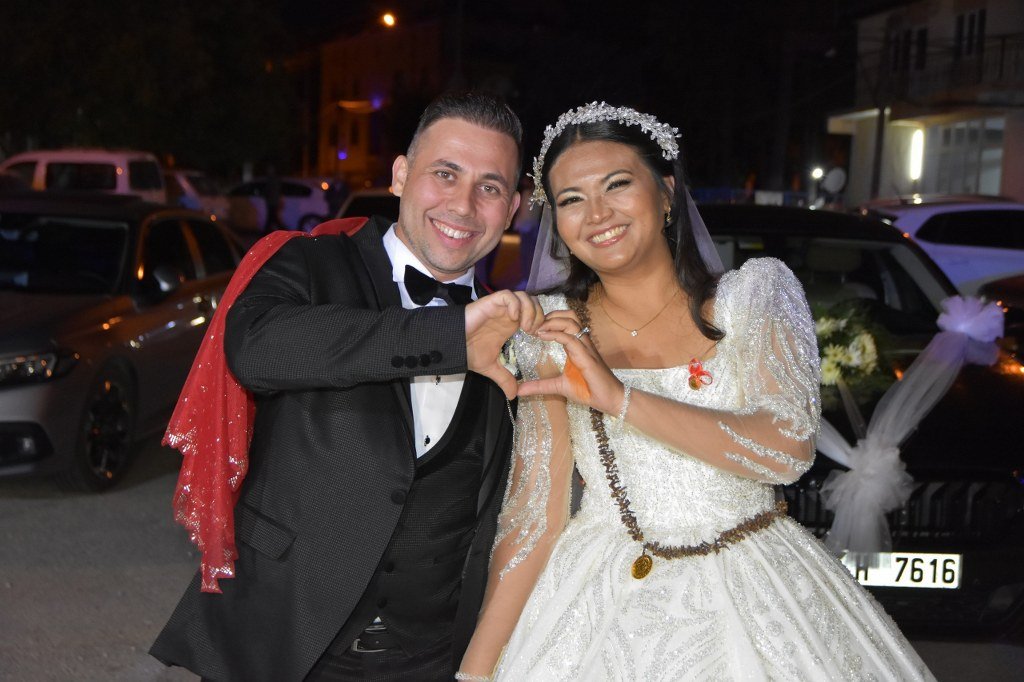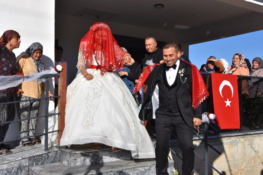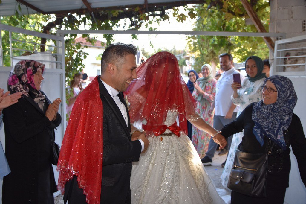 Gelin Aylin ve damat Gökhan Ünmek'in mutluluğu gözlerinden okunurken, Horasanlı Mahallesi sakinleri de bu özel günlerinde genç çifti yalnız bırakmadı. Düğün, yöresel oyunlar ve ikramlarla geç saatlere kadar sürdü./İHA