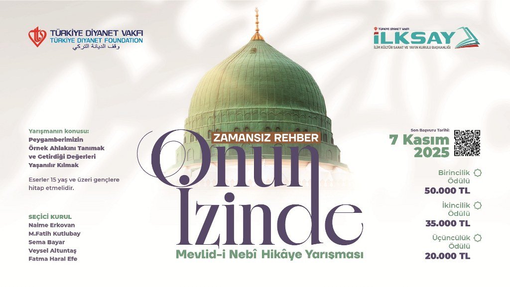 Türkiye Diyanet Vakfı (TDV) İLKSAY, 2025 Mevlid-i Nebi etkinlikleri kapsamında “Zamansız Rehber: Onun İzinde” temalı hikâye yarışması düzenliyor