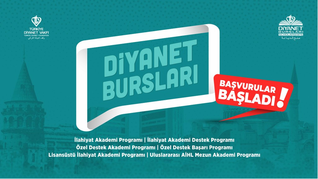 Türkiye Diyanet Vakfı, Diyanet İşleri Başkanlığı ve üniversiteler iş birliğiyle yürütülen burs programlarına başvurular, https://diyanetburslari.tdv.org adresi üzerinden alınacak.