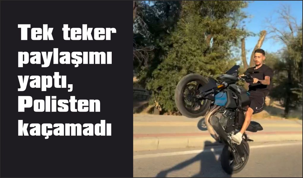 Bursa'nın Osmangazi ilçesinde trafiği tehlikeye atan bir motosiklet sürücüsü, plakasız aracıyla tek teker üzerinde ilerlediği anları sosyal medyada paylaştı. Görüntülerin kısa sürede yayılması üzerine aynı sürücüyle yolda karşılaşan polis, şahsı yakalayarak trafik polisi çağırdı. Motosikletinin arkasına plaka yerine "Ölüler görür" yazdıran sürücünün bu kez cezadan kaçamadığı anlar kameralara yansıdı. Trafik polisleri hem motosikleti trafikten men etti hem de cezai işlem uyguladı. O anları kayda alan sürücünün "Daha önce 4 yunus polisinden kaçtım" sözlerine karşılık, polis ekiplerinin "Polisler de görür" cevabını verdi.