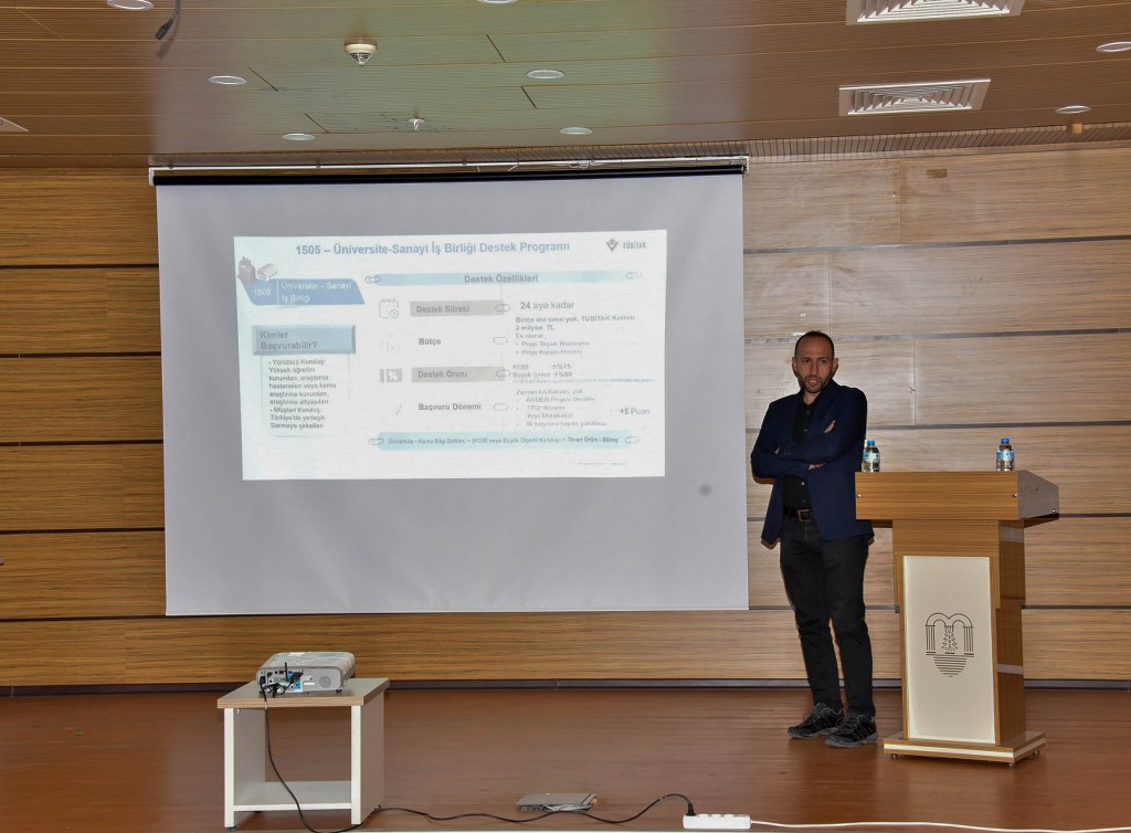 Taş, konuşmasında özellikle 1505 Üniversite-Sanayi İş Birliği projelerinin başvuru süreçleri ve yazım teknikleri üzerinde durdu.