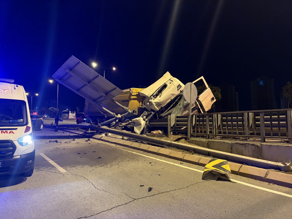 Kayseri’nin Melikgazi ilçesinde sürücüsünün direksiyon hakimiyetini kaybettiği tır bariyerlere girdi, sürücü yaralandı.