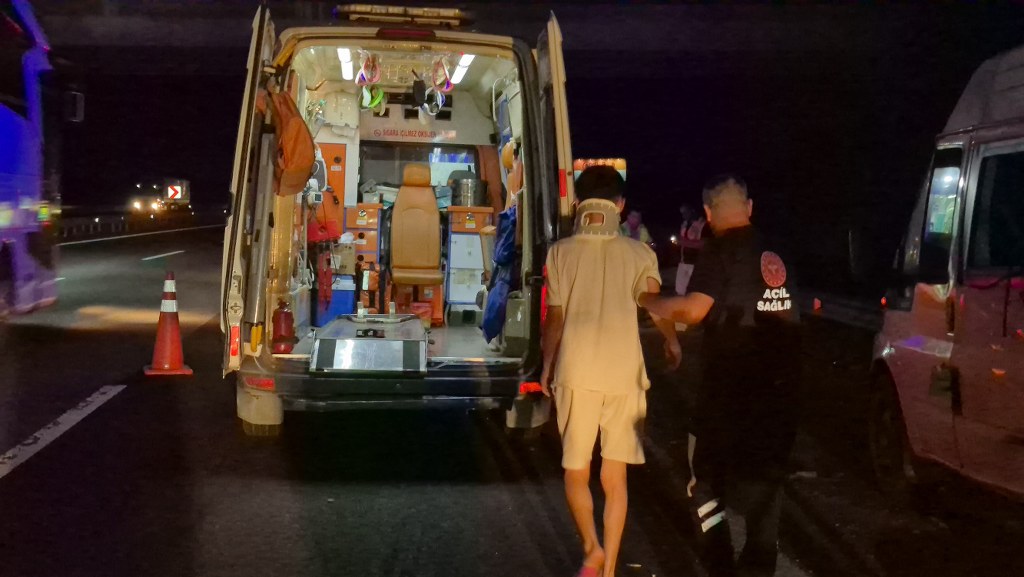 Anadolu Otoyolu Düzce kesiminde meydana gelen kazada, İstanbul’dan Ankara istikametine giden tır, aynı istikamette gitmekte olan minibüse arkadan çarptı. Kazada minibüste bulunan 7 kişi yaralandı. Çarpışmanın etkisiyle yolun kenarına savrulan yaralıların inlemeleri ise yürekleri sızlattı.