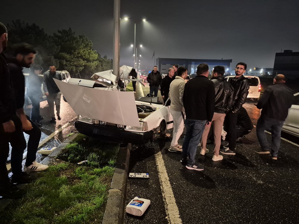 Tekirdağ’da elektrik direğine çarpan otomobil ikiye ayrıldı