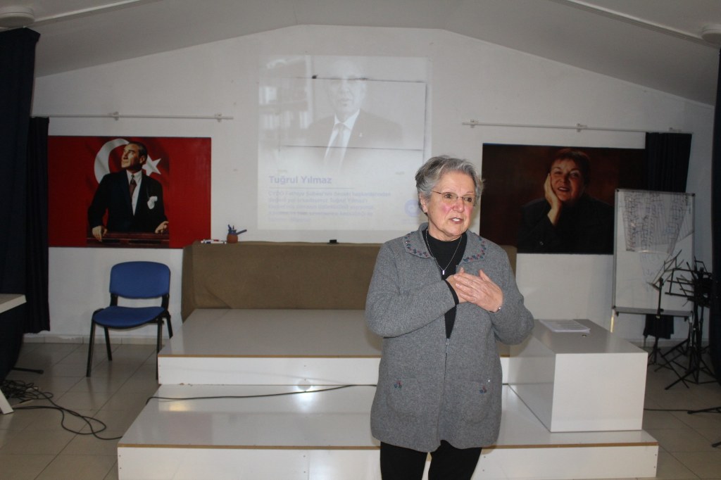 Anma etkinliği sonunda Çağdaş Yaşamı Destekleme Derneği Fethiye şubesinin toplantı salonuna Tuğrul Yılmaz’ın ismi törenle verildi. Anma etkinliğinde konuşma yapan ÇYDD Fethiye şubesi başkanı Canan İzmirli “derneğimizde uzun yıllar başkanlık yapan ve başarılı çalışmalarda bulunan değerli yol arkadaşımız Tuğrul Yılmaz’ı kaybetmenin üzüntüsünü yaşamaktayız. Sadece derneğimize değil Fethiye’nin sosyal hayatına, eğitim ve öğretime büyük katkıları olan Tuğrul Yılmaz’ı saygıyla anıyoruz. ÇYDD Fethiye şubemiz Tuğrul Yılmaz’ın başkanlığı döneminde başarılı hizmetlerde bulunmuştur ve kendisi derneğimize büyük bir eser bırakmıştır. Tuğrul Yılmaz başkanlığı döneminde; şubemizin hizmet binasını satın almıştır. ÇYDD şubeleri içerisinde Fethiye şubemiz kendi hizmet binasına sahip sayılı şubeler arasındadır. Tuğrul Yılmaz’ı unutmayacağız” dedi. Yoğun katılımın olduğu anma etkinliğinde Tuğrul Yılmaz’ın çalışma hayatı ile ilgili fotoğraflardan oluşan bir sinevizyon sunumu yapıldı ve Tuğrul Yılmaz’ın konuşmaları ile türkü söylerken videosu yayınlandı. Duygulu anların yaşandığı anma etkinliğinde Tuğrul Yılmaz’ın eşi, çocukları ve yakın arkadaşları gözyaşlarını tutamadılar. Daha sonra Tuğrul Yılmaz’ın arkadaşları ve aile üyeleri kendisi ile ilgili anılarını paylaştılar. Anma etkinliği sonunda ÇYDD Fethiye şubesi toplantı salonuna Tuğrul Yılmaz’ın ismi verildi. Haber/Foto-Gökhan Ayyıldız