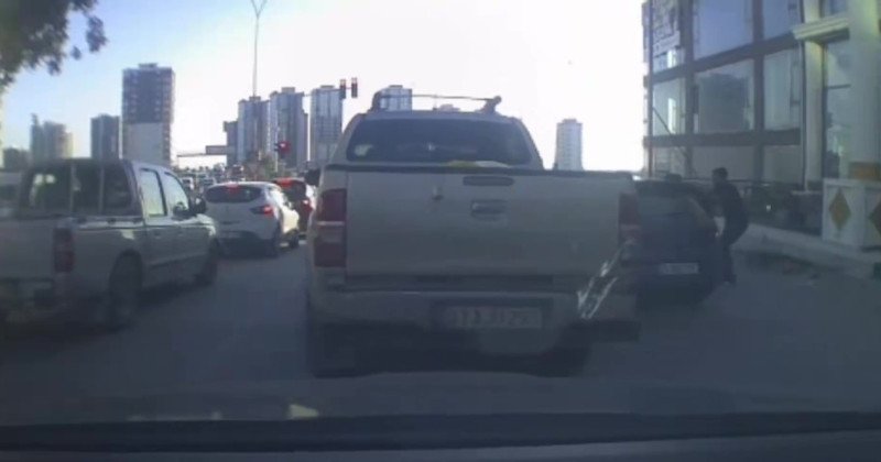 Adana'da kimliği belirsiz 3 kişi, trafikte tartıştıkları sürücünün otomobiline sopa ve sandalyelerle saldırdı. O anlar, trafikteki başka bir aracın kamerasına yansıdı.