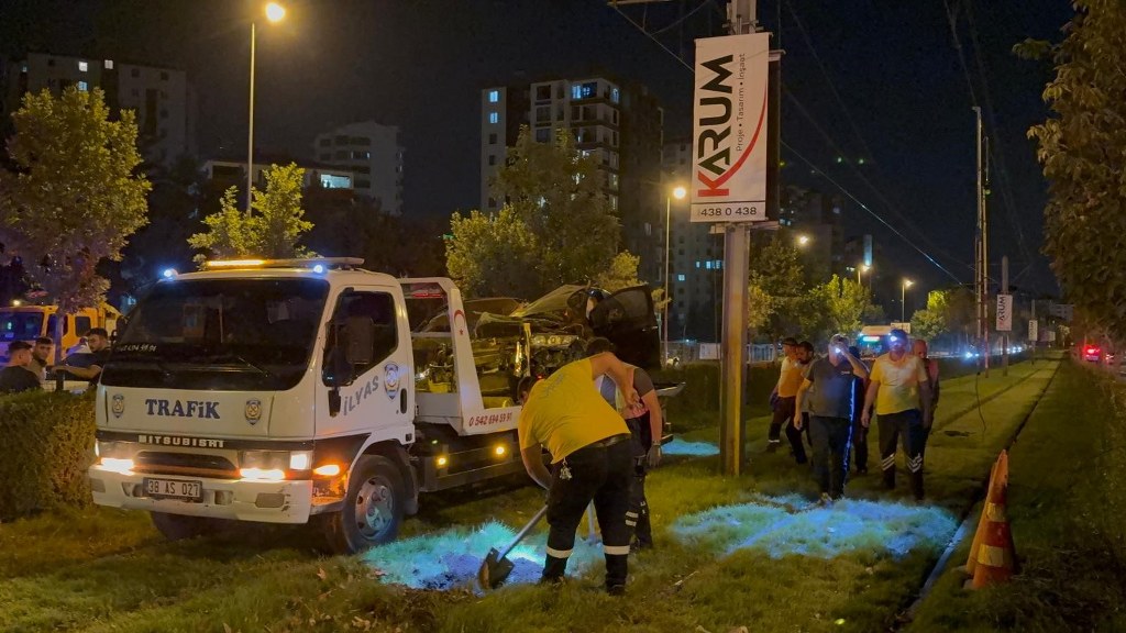 Kayseri'nin Kocasinan ilçesinde sürücüsünün direksiyon hakimiyetini kaybettiği otomobil tramvay yoluna uçarken, kazada 1 kişi öldü, 1 kişi yaralandı.