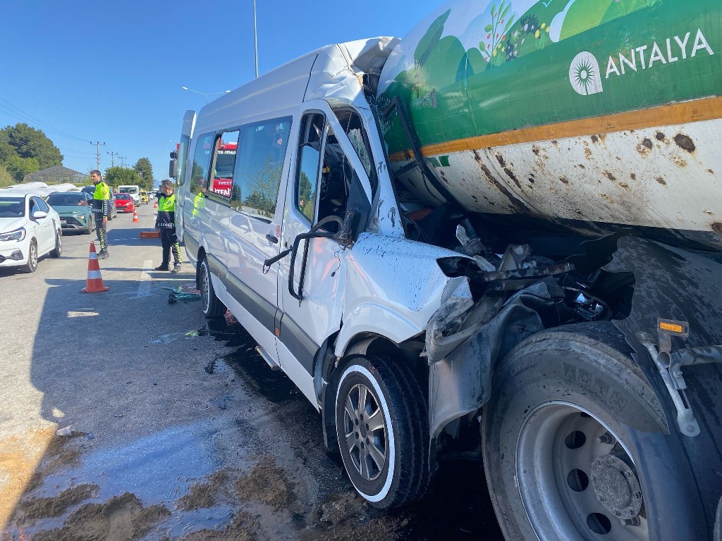 Antalya'nın Serik ilçesinde sulama kamyonu ile tur minibüsünün çarpıştığı kazada 6 kişi yaralandı