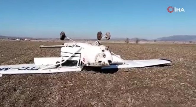 Isparta'dan havalanan eğitim uçağı, Denizli’nin Çal ilçesine bağlı İsabey Mahallesi'ne sert iniş yaptı. Tarlaya ters bir şekilde düşen uçağın pilotu yaralandı.