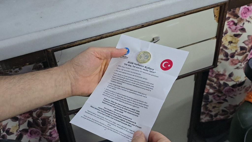 ÜLKÜ OCAKLARINDAN ESNAFA SİFTAH PARASIEsnaf Erkan Uysal, sabah dükkanını açtığında kapıda bir zarf gördüğünü anlatarak, "Ülkü Ocakları sabah siftah parası bırakmış. Ahilik haftamızı kutlamışlar. Allah bereket versin. Güzel bir gelenek ve bunların sürmesi, bu tür geleneklerin yaşatılması gerektiğini düşünüyorum" dedi.Bir başka esnaf Recep Şahin, sabahın erken saatlerinde zarfların bırakıldığını ve eskiye dönük geleneklerin devam etmesinin çok güzel olduğunu ifade ederken, Murat Kaynar isimli esnaf ise, bereketli bir gün olur inşallah, güzel bir düşünce diyerek ülkü ocaklarına teşekkür etti.