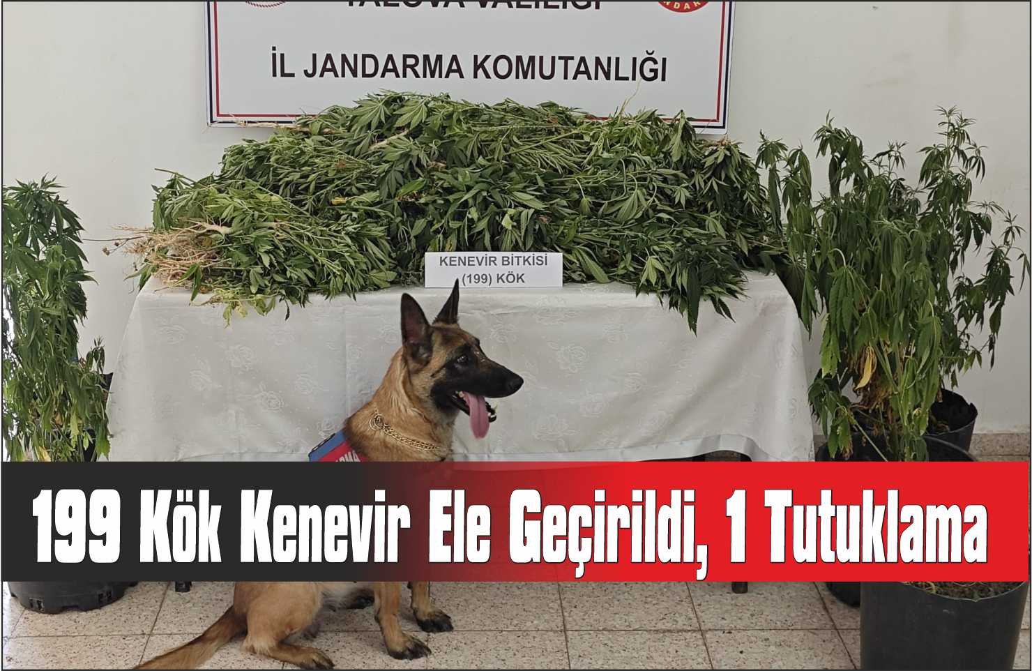 Ormanlık alana yasa dışı kenevir eken şüpheli, jandarma operasyonuyla yakalandı. Ele geçirilen 199 kök kenevir imha edildi.