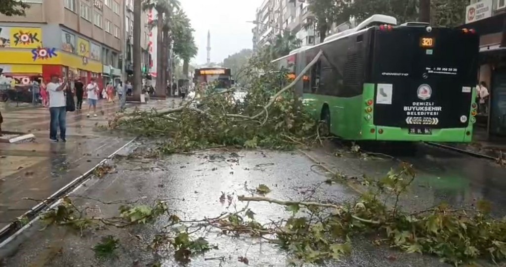 Belediye otobüsünün üzerine ağaç düştü, faciadan dönüldü Denizli'de sağanak ve fırtınanın etkisiyle belediye otobüsünün üzerine ağaç düştü