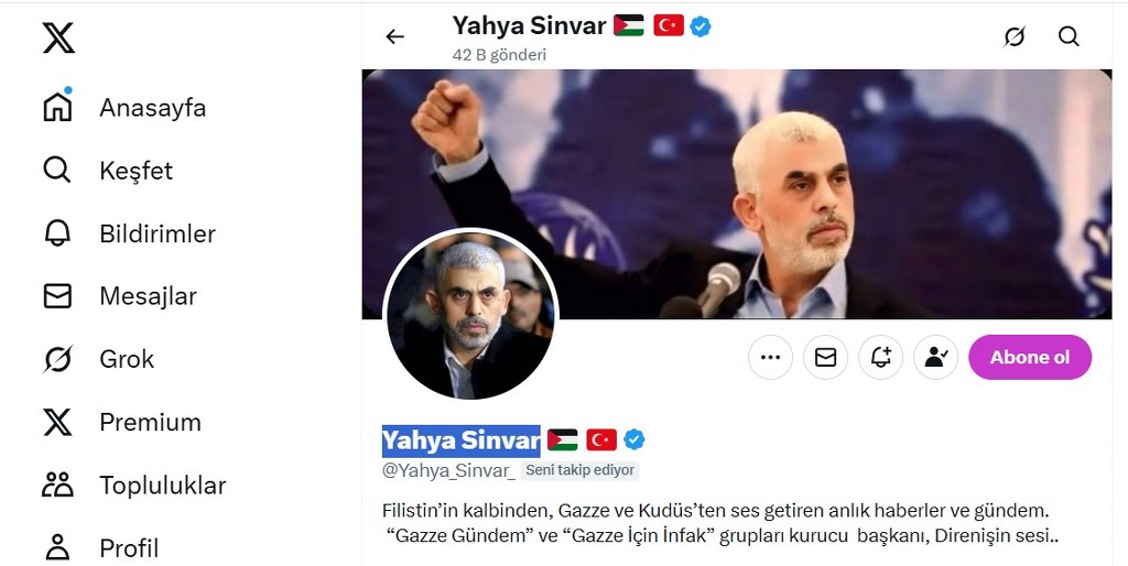 Yahya Sinvar'ın X hesabından Habercitv.com.tr’nin X hesabına gelen mesajda; “Dünyanın dört bir yanında yankılanan tek bir hakikat var: "Siyonizm Terördür!