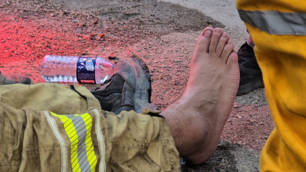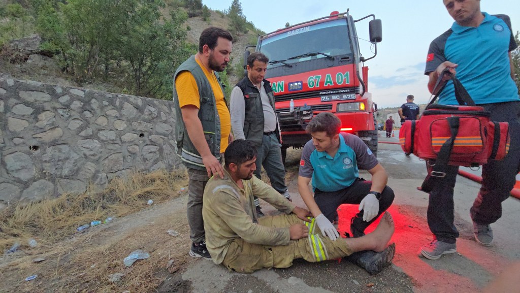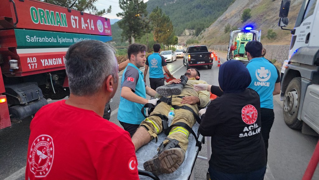 Arkadaşlarının yardımıyla karayoluna indirilen işçi sağlık ekiplerinin ilk müdahalesinin ardından ambulansla Karabük Eğitim ve Araştırma Hastanesine kaldırıldı. İşçinin ayağından çıkardığı botunu kucağında taşıması ise dikkat çekerken dumandan etkilenen bir diğer işçinin de tedbir amacıyla hastaneye kaldırıldığı öğrenildi. Her iki işçinin de sağlık durumunun iyi olduğu bildirildi. (İHA)