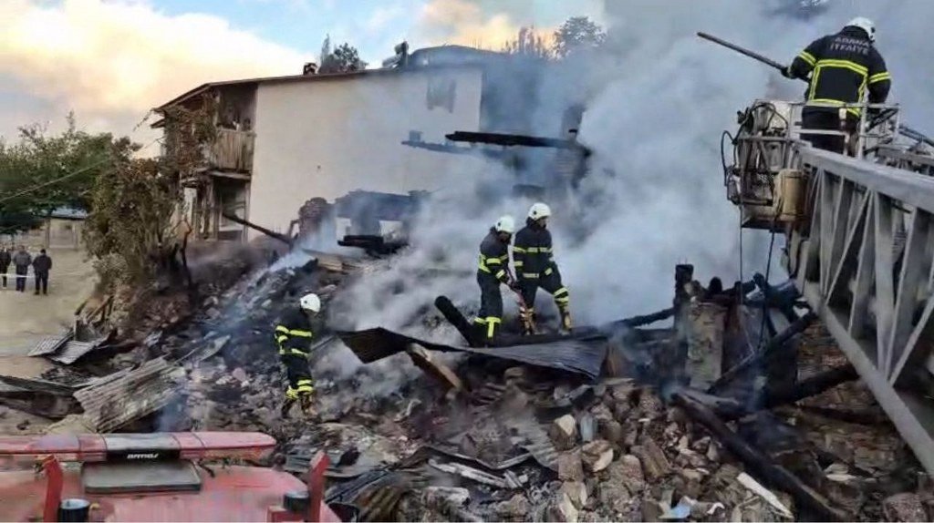 Adana'nın Saimbeyli ilçesinde yangın çıkan ev çöktü, işitme ve konuşma engelli ağabey ve kardeşini enkaz altında arama çalışması sürüyor