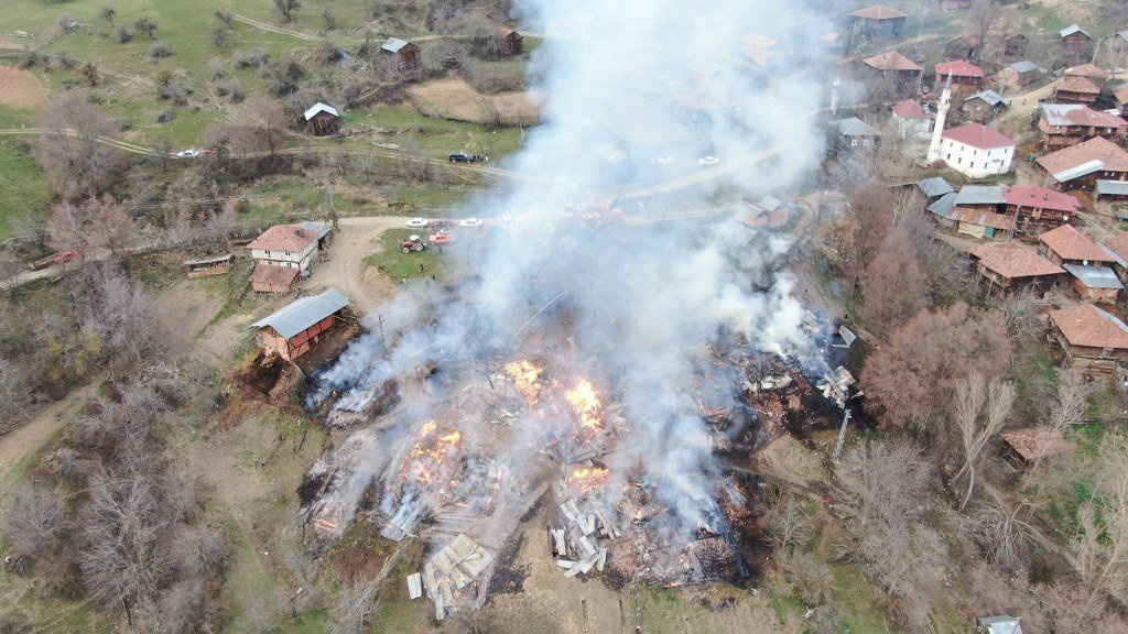 Olay, Taşköprü ilçesine bağlı Bozarmut köyü Bulak Mahallesi'nde meydana geldi. Edinilen bilgiye göre, ahırdan çıktığı tahmin edilen yangın kısa sürede büyüyerek hemen bitişiğinde bulunan samanlık ve ahırlara sıçradı. Rüzgarın da etkisiyle alevler evleri de sardı. İhbar üzerine yangın yerine Taşköprü ve Hanönü ilçelerinden itfaiye ekipleri ile Kastamonu ve Taşköprü Orman İşletme Müdürlüğü arazözleri sevk edildi. Ekiplerin yoğun çalışmaları sonucu kontrol altına alınan yangında Mehmet Tekin, Ziya Tekin ve Rasim Kaya'ya ait 3 ev, 6 ahır, 9 samanlık ve 2 ambar yanarak kullanılamaz hale geldi. Ekiplerin yangın yerinde soğutma çalışmaları sürüyor.