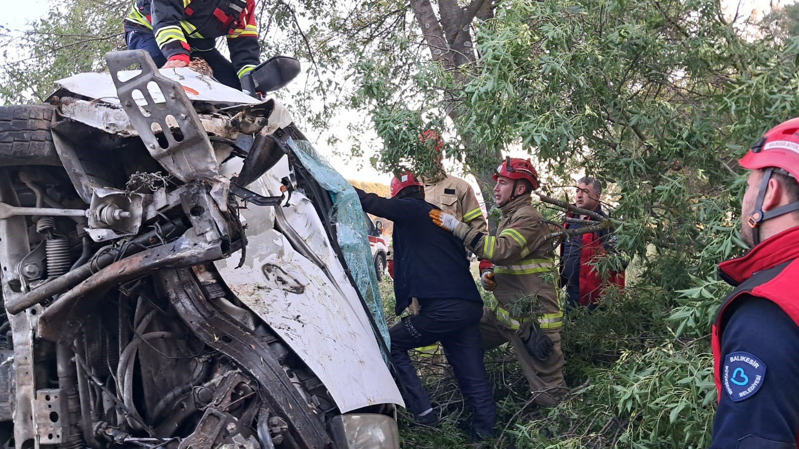 Balıkesir'de sabah saatlerinde direksiyon hakimiyetini kaybeden sürücünün aracı tek taraflı trafik kazasına karıştı. Şarampole uçan araç ters döndü. İtfaiye ekipleri yaralı sürücüyü itfaiye ekipleri hidrolik makas kullanarak araçtan çıkardı.
