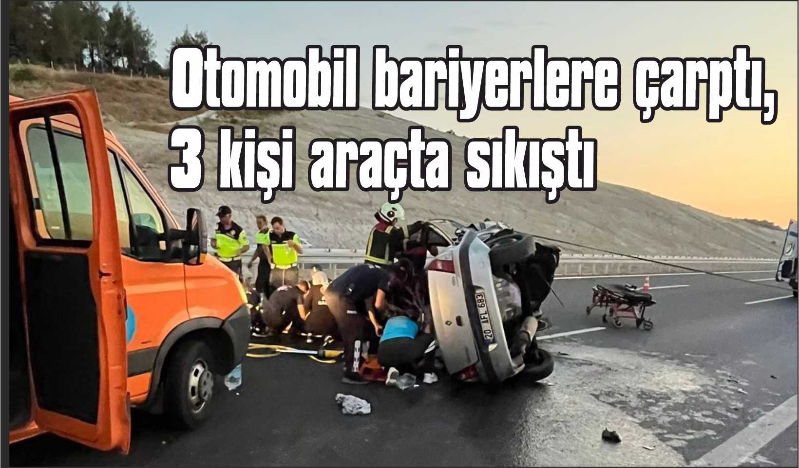Otomobil bariyerlere çarptı, 3 kişi araçta sıkıştı