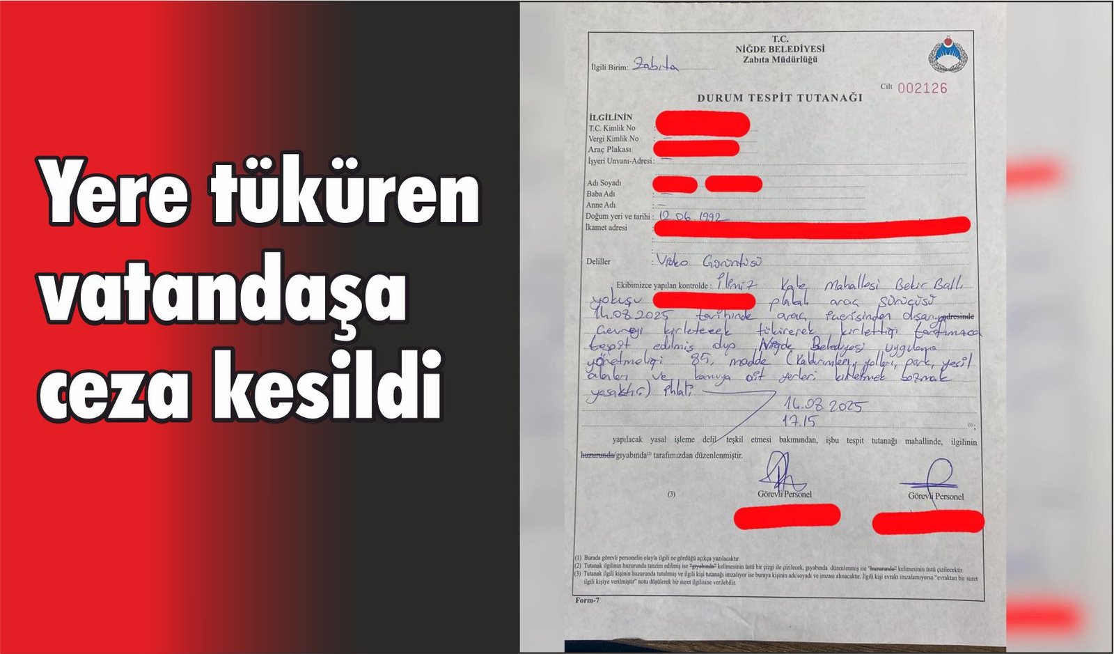 Niğde Belediyesi tarafından "Dikkat ! Kurallara uymamaya devam edilirse "85. Madde gereğince" diye başlayan bir ceza tutanağı kapınızı çalabilir. Tıpkı bugün yerleri kirleten hemşehrimizin başına gelen gibi " ifadeleri ile kesilen ceza tutanağı paylaşıldı.