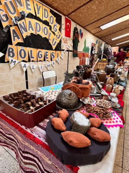 Okul bahçesinde kurulan stantlarda, her bölgeye özgü ürünler tanıtıldı.
