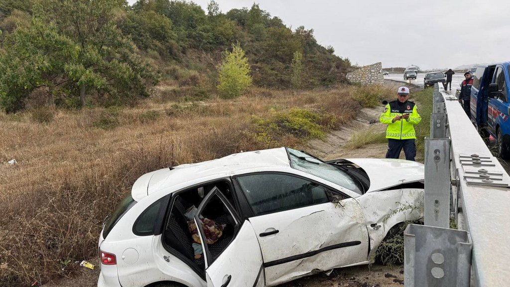 Edinilen bilgiye göre, saat 15.30 sıralarında İznik istikametine ilerleyen otomobil yoğun yağış nedeniyle kayganlaşan yolda seyir halinde olan Yunus Ş. (29) idaresindeki 07 DG 538 plakalı otomobil sürücünün direksiyon hakimiyetini kaybetmesiyle kontrolden çıkarak refüje uçtu.