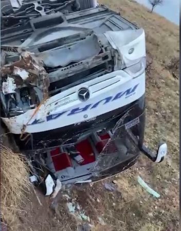 Kazada yolcu otobüsündeki 2 kişi hayatını kaybetti, 21 kişi yaralandı.