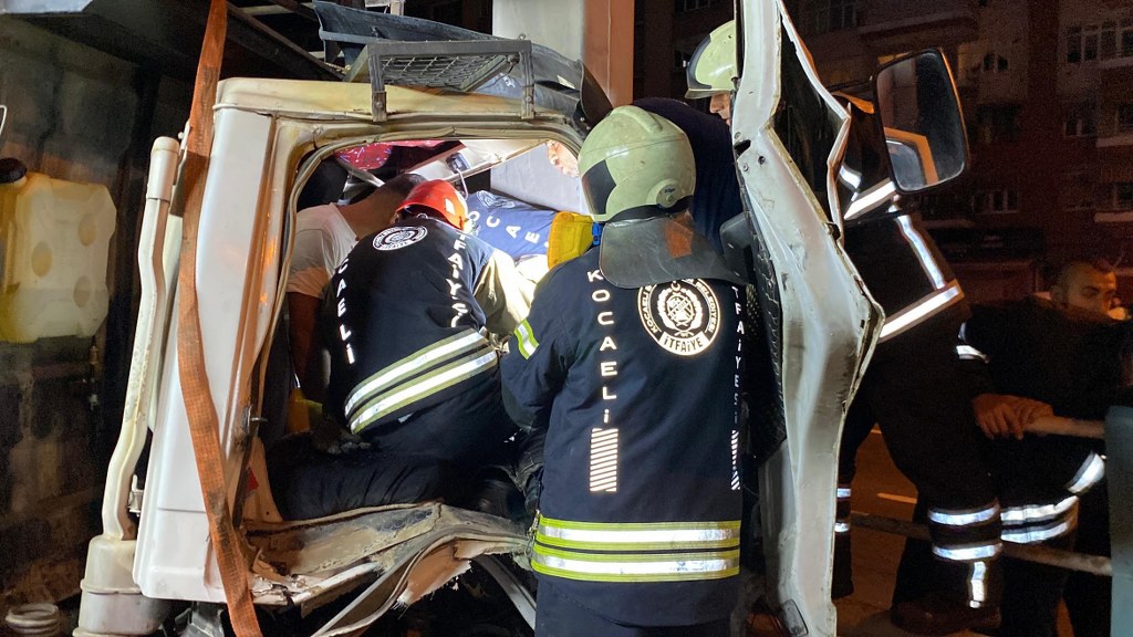 Kocaeli'nin İzmit ilçesinde yol ayrımındaki yön levhasının direğine çarpan kamyonetin kupası adeta kağıt gibi ezildi. Araç içinde sıkışan sürücü, itfaiye ekipleri tarafından çıkarılıp yaralı olarak hastaneye kaldırıldı.