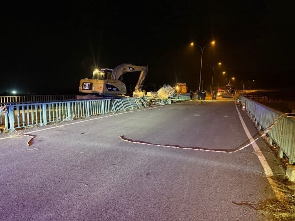 Öte yandan hurdaya dönen araç bölgeye gelen iş makinesi tarafından devrildiği köprü demirlerinin üstünden kaldırıldı. (İHA)