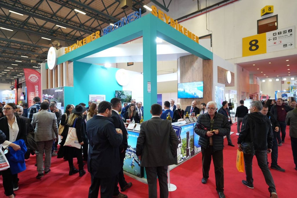 TÜYAP Fuar Merkezi’nde 7’nci salon, 7232 numaralı stantta ziyaretçilerini ağırlamaya başlayan Seydikemer Belediyesi, Dünyanın hemen hemen tüm ülkelerinden katılan ziyaretçilere ve acente yetkililerine kentin öne çıkan ürünlerinden ikramlarda bulunurken, Seydikemer Belediye Başkanı Önder Akdenizli de, Seydikemer ilçesinin turizm değerleri hakkında bilgiler aktarıyor.