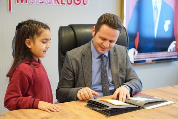 İl Müdürü Çay; ilkokul il birincisi Ecem Defne Gecegider (Menteşe Şehit İbrahim Karaoğlanoğlu İlkokulu), ortaokul il birincisi Jale Deniz Temel (Dalaman Özel Bahçeşehir Ortaokulu) ve lise il birincisi Eylül Öztürk’ü (Fethiye Göcek Süleyman Şatır Anadolu Lisesi) tebrik ederek başarılarının devamını diledi. Öğrencilerin hazırladığı sözlükleri tek tek inceleyen İl Müdürümüz, onlarla sohbet etti ve hediyelerini takdim etti.