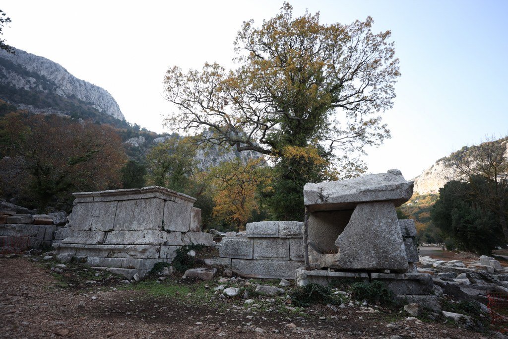 Güllük Dağı’nın eteklerine kurulan ve sarp bir bölgede yer aldığı için antik çağdan sonra yağmaya uğramadığı değerlendirilen Termesos’u, Büyük İskender’in milattan önce 333’te kuşattığı ancak güçlü savunması nedeniyle kenti alamadığı tarihi kaynaklarda yer alıyor. (AA)