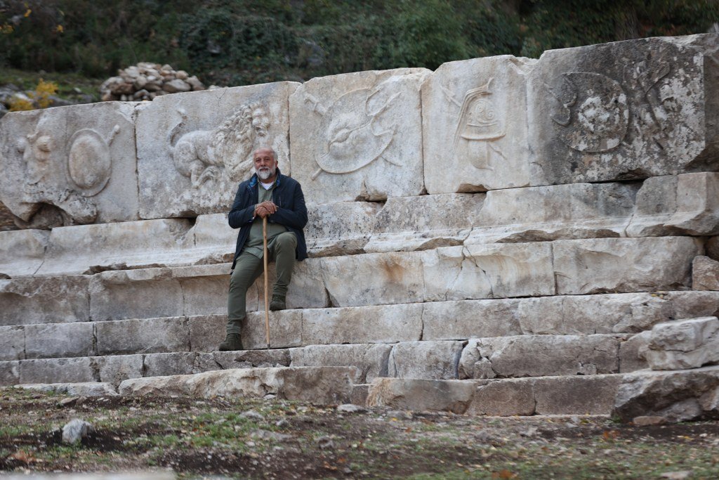 “Kazı çalışmalarımızı bu alanda yoğunlaştırdık. Özellikle 2 anıt mezar üzerinde çalışıyoruz. Bir tanesine ‘dans eden kadınlar’ mezarı diyoruz. Mezar odasının giriş kapısının iki tarafında insan boyutunda dans eden kadın kabartması var. Kadınlardan bir tanesinin başını yıkıklar arasında bulduk ve müzeye gönderdik. Ayağa kalktığında 14 metre yüksekliğinde olacak. Çok fazla kabartma ile süslenmiş bir mezar yapısı olacak. Kadın kabartmasının yanı sıra tiyatro maskeleri, eroslar, nikeler, aslan kabartma ve bezeleri ile süslü bir yapı.”